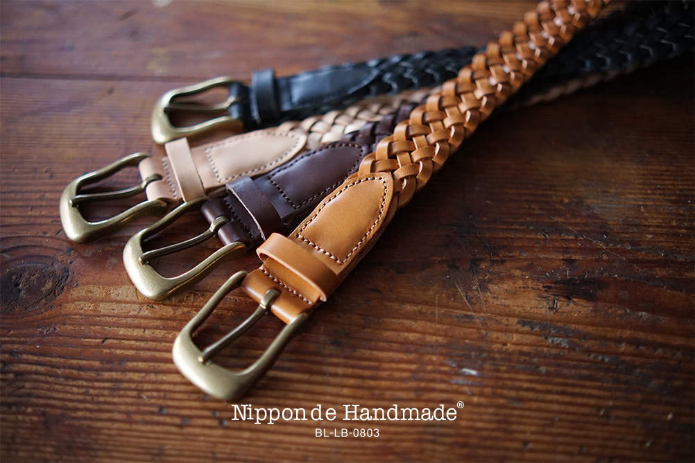 約6mm幅の栃木レザーの牛革を、7本編みでしっかり編み込んだメッシュベルト。